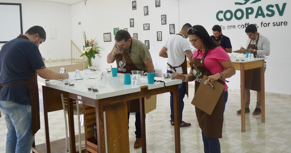 O corpo de jurados é formado por parceiros comerciais da COOPASV, que realizam a degustação e escolhem os melhores cafés da safra.